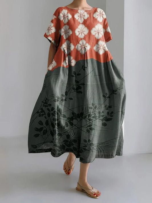 New Women's Round Neck Long Casual Dress Summer Large Size Fresh Fish Print Dress Street Vacation Short-sleeved Dress