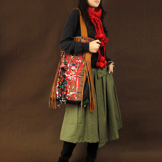 Ethnic Style Embroidery Versatile Canvas Oblique Tassel Shoulder Bag