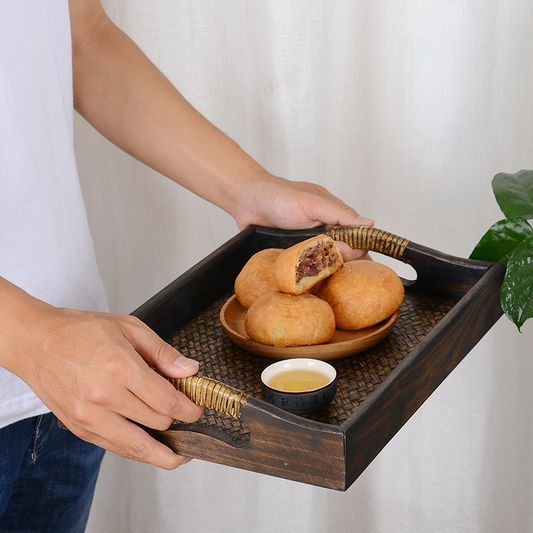 Thai crafts rattan weaving tea tray essential oil tray household fruits and vegetables storage