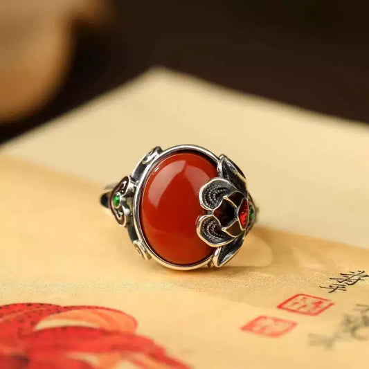Nanhong Agate Rose S925 Silver Ring Women's 2026 New Popular Niche Design Ethnic Style Index Finger Ring
