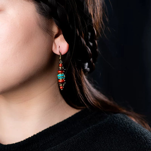 Retro Ethnic Style Nepalese Earrings, Natural Red Stone Earrings, Simple and Atmospheric Versatile Tibetan Niche Design Earrings