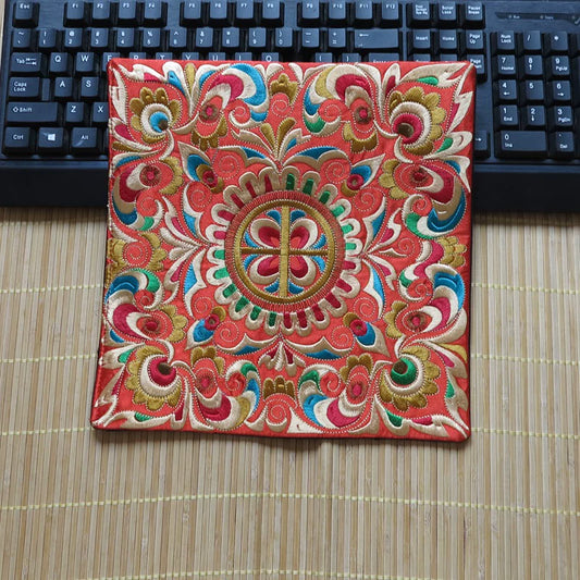 Ethnic Style Embroidery Placemat Yi Fabric Embroidery Heat Insulation Mat Tea Square Mat Table Coffee Table Anti-scalding and Non-slip Mat