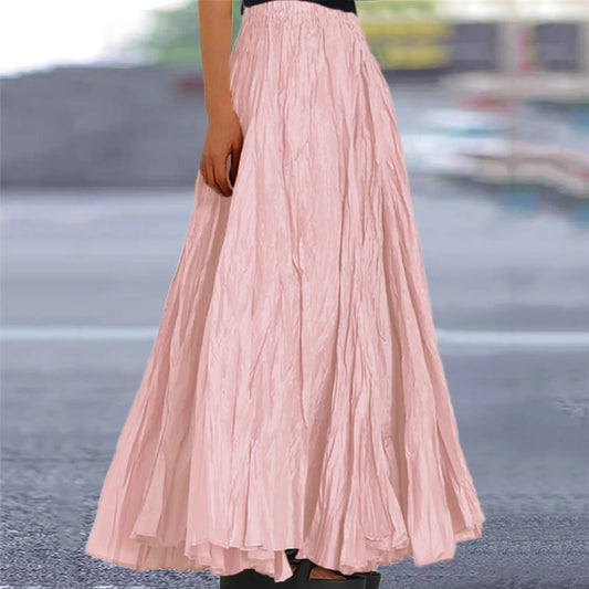 Skirts For Women Female Fashion Casual High Waist Fold Pleatd Dress Soild Vintage Loose Beach Wrap Hip Maxi Long Girls Skirts