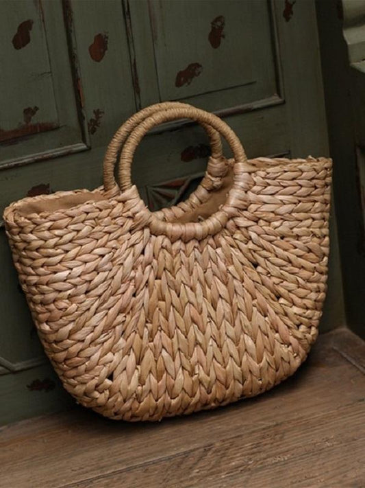 Exquisite Retro Women Hollowed Round Straw Weaving Bag