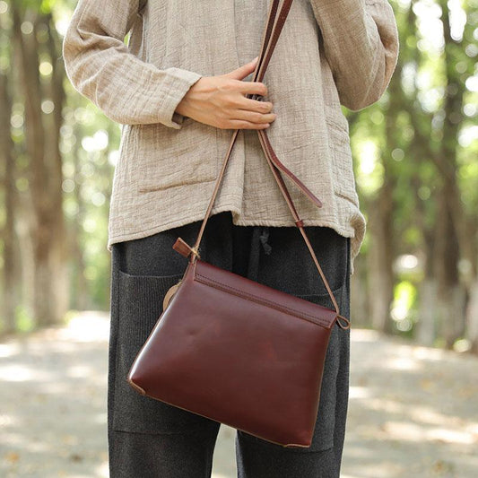 Vintage Cowhide Two Magnetic Buckles Red Brown Shoulder Bag For Women