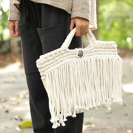 Handmade Cotton Knitting Bohemia Tassel Bag