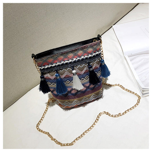 Bohemian New Ethnic Wind Woven Tassel Shoulder Messenger Bag Fashion Beach Straw Bag