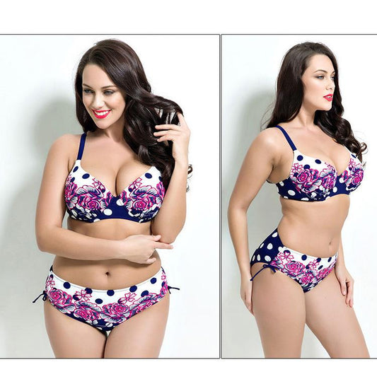Plus Size Polka Dot Printed High Waist Backless Bikinis Sets Swimwear For Women