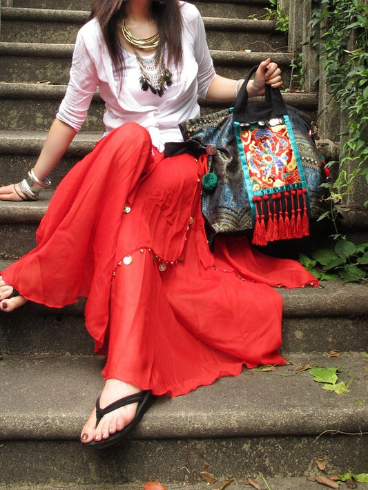 Bohemian Floral Fringe Sling Bag Hip Dress Midi Dress