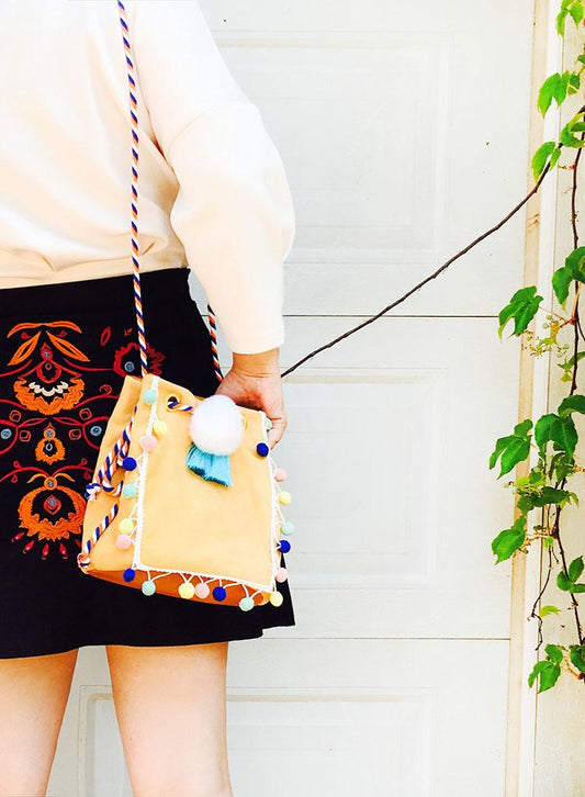 Bohemian Brown Beaded Embroidered Tassel Bucket Bag