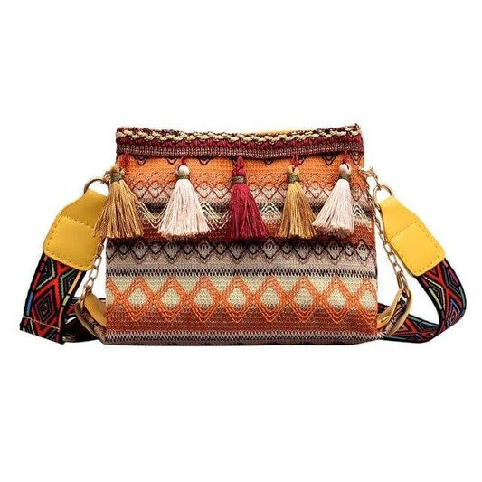 Fashion Boho Women Suede Weave Tassel Shoulder Bag