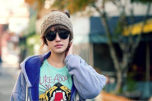 Men and women autumn and winter pleated cuffed hooded outdoor ski wool cap
