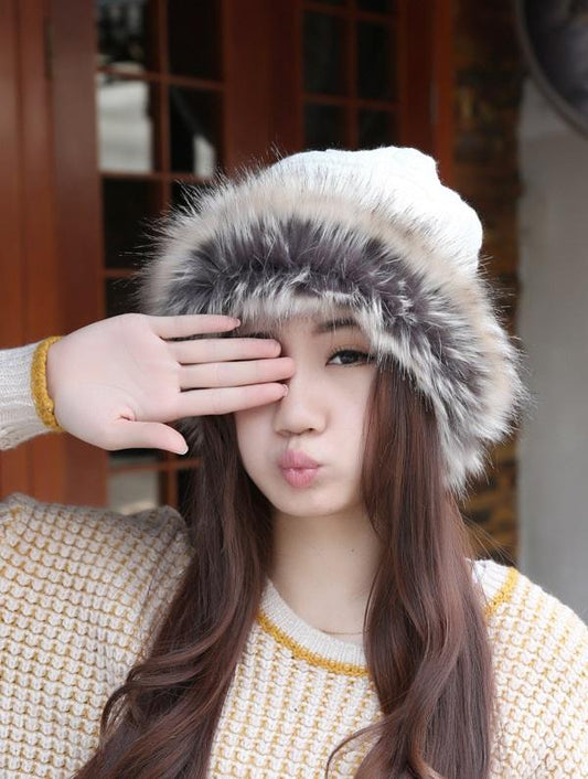 Women Winter Fur Collar Knit Hat Bib