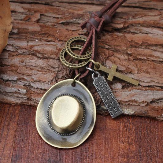 Western Cowboy Hat Pendant with Jewelry Pendant Long Sweater Chain