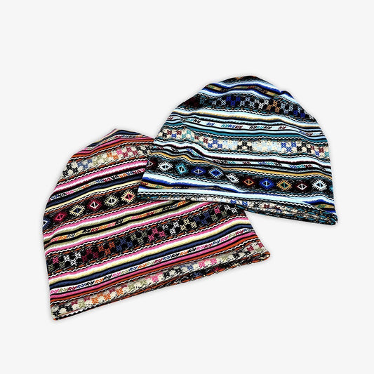 Casual Baggy Slouchy Four Seasons Cotton Geometric Pattern Adult Hat Infinity Scarf