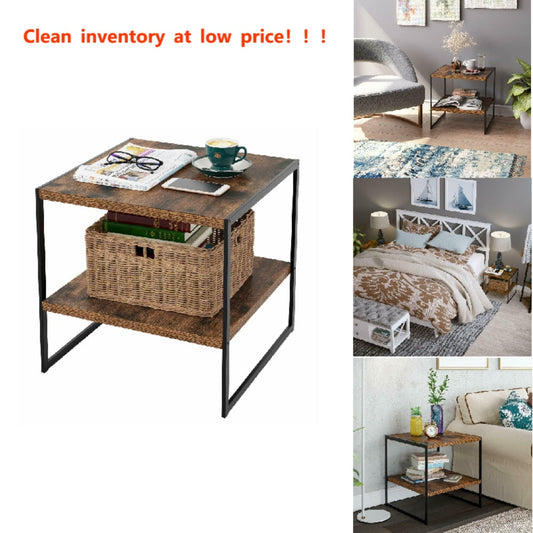 Industrial Bedside Table Corner Desk Rustic Coffee Table with Storage Cabinet Vintage Metal Side End Table Unit Indoor Furniture