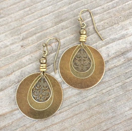 Bohemian vintage ethnic style cotton and linen women's assembly jewelry new old bronze circle carved earrings