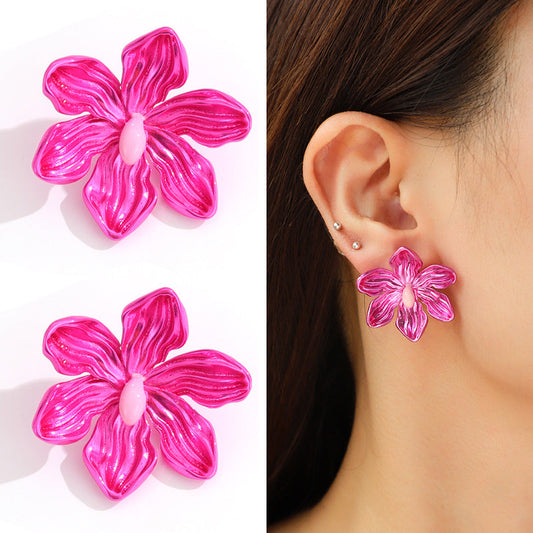 Metal flower bow Barbie pink stud earrings women's fashion personality earrings