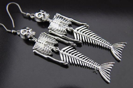 Mermaid Skeleton Dark Ocean Sailing Earrings Gothic Accessories