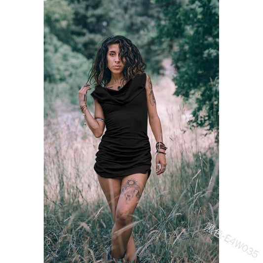 Women Medieval Vintage Dress Hollow Back Hooded Archer Hunter Cosplay costumes Gothic Irregular Party Dress