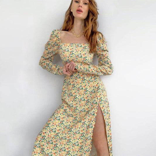 Bohemian idyllic Little Floral long sleeve split dress youth sweet little daisy print