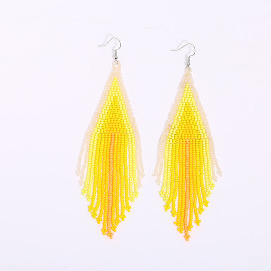 Bohemian exotic long tassel Rainbow Bead Earrings