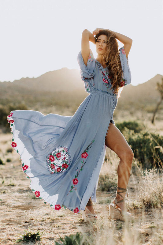 Vintage dress Bohemian Embroidered Flower split dress