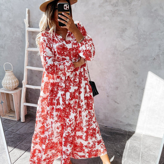 New long sleeve printed hollow long dress in summer