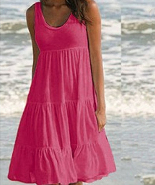 Sleeveless Dress Loose Size Women's Beach Skirt Solid Color Personality Irregular Solid Color Vest Dress