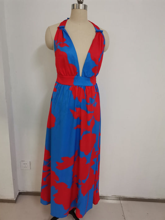 Summer Bohemian Printed V-neck Suspender Sleeveless Dress MP-683