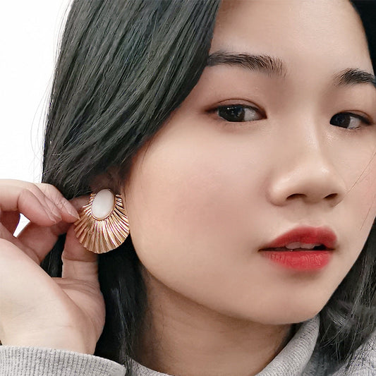Exaggerated Fan-shaped Alloy Earrings with White Shells