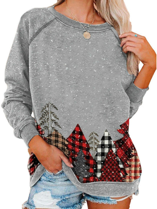 Women's Christmas Snowy Woods Print Long Sleeve Sweatshirt