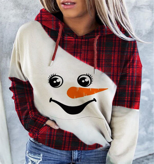 Women's Snowman Contrast Color Long Sleeve Tie-Dye Hoodie