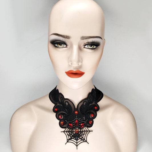 Vintage Style Necklace Female Neck with Lace Necklace Cobweb Halloween Costume Accessories