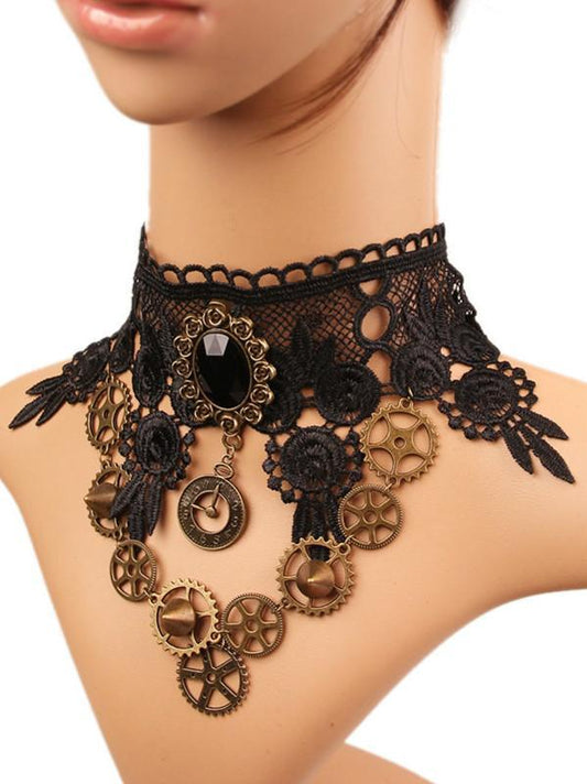 Steam Punk Retro Steam Engine Gear Series Lace Female Necklace Exaggerated Jewelry