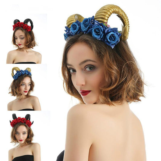 Velvet Rose Black Horn Wide Hair Hoop Animal Headband Halloween Headdress