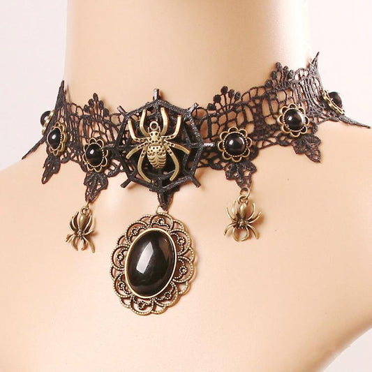 Halloween Gothic Style Lace Necklace Spider Necklace Female Retro Necklace