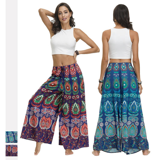 New Ethnic Style Casual All-match Wide-leg Pants with Waist Loose Pants