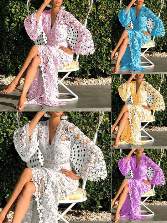 New Boho Women's Sexy Backless Slim Lace Big Swing Long Dress