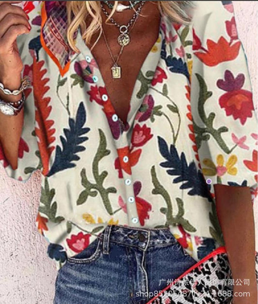 Multicolor Printing Fashion Loose Women's Shirt