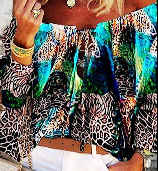 Retro Style Off Shoulder Print Women's Top