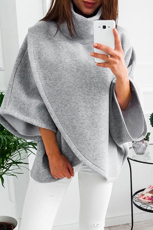 Solid Color High Neck Irregular Tops Sweater