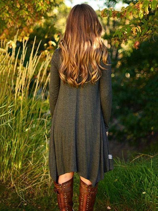 Round Neck Long Sleeve Irregular Dress