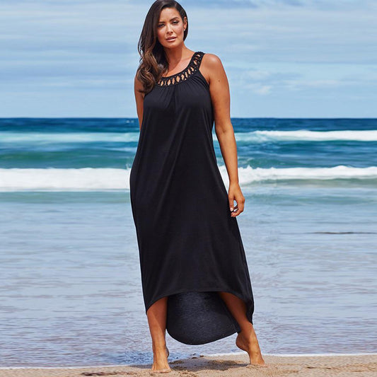 Large Size Loose Lace Collar Sleeveless Beach Dress