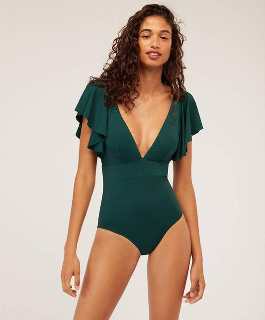 Sexy Solid Color Ruffled One-Piece Swimsuit