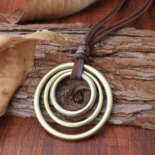 Bohemian Wind Necklace Three-ring Pendant Accessories Pendant Long Sweater Chain