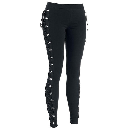Fall Casual Gothic Office Lady Punk Style Women Plain Thin Straight Black Leggings