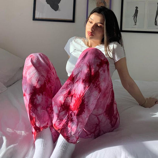 Women's Pink Purple Tie-Dye Casual Wide Leg Pants