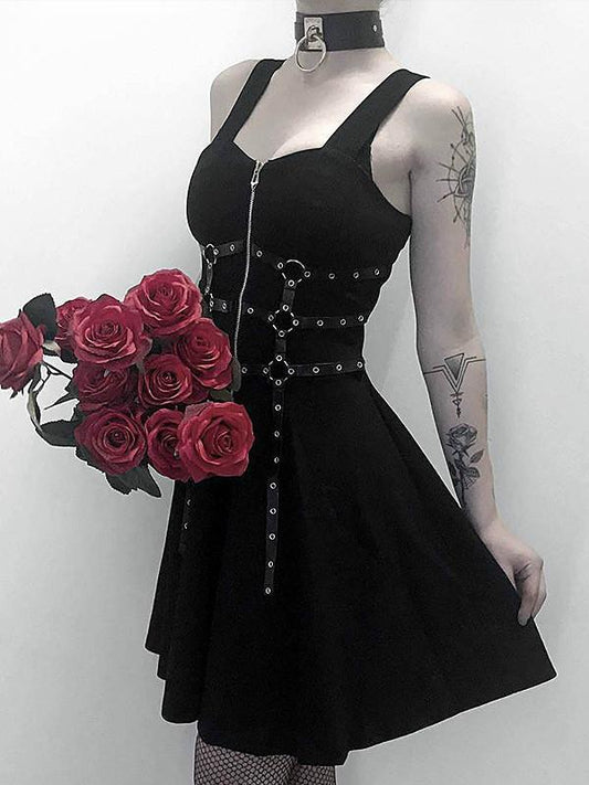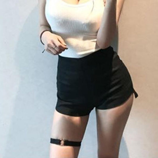 High Waist Women Summer Black Goth Girls Harness Thigh Belt Strap Sexy Punk Shorts