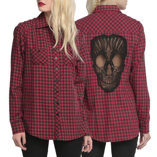 Halloween Lapel Long Sleeve Plaid Shirt Fashion Ladies Blouse Autumn